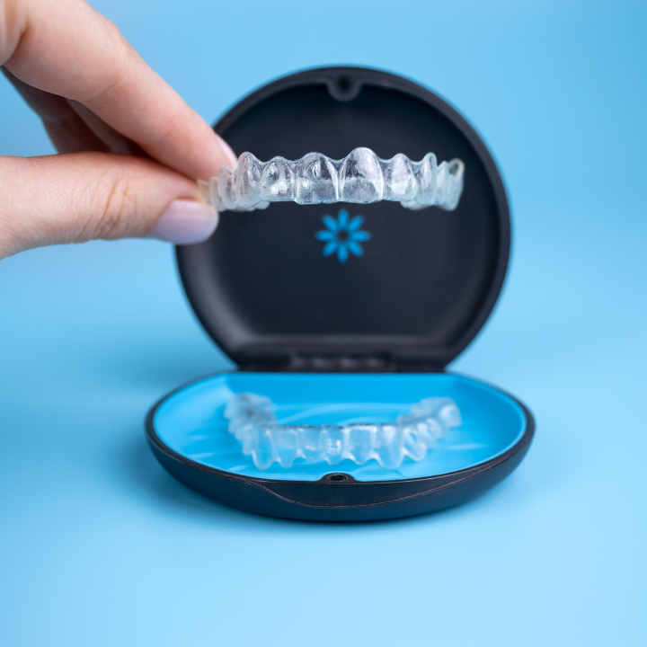 Custom-made clear, removable aligners, that are changed periodically under the guidance of an orthodontist.